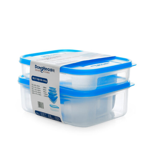 Bộ 6 hộp bảo quản thực phẩm chữ nhật gồm 5 vừa (240+500+900+2000+3500ml) + thấp 1500ml – DK8441