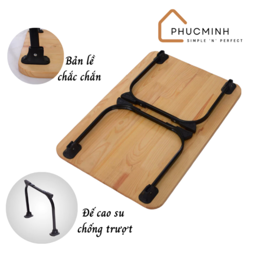 Bàn Gấp Kích Thước 70x50cm CHỊU TẢI 80kg Gỗ Tự Nhiên Chân Sắt Có Đế Cao Su