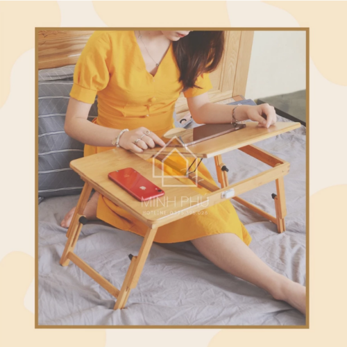 Bàn Gấp Gọn Gỗ Tre Tự Nhiên, Bàn Laptop Thông Minh Có Thể Điều Chỉnh Độ Cao