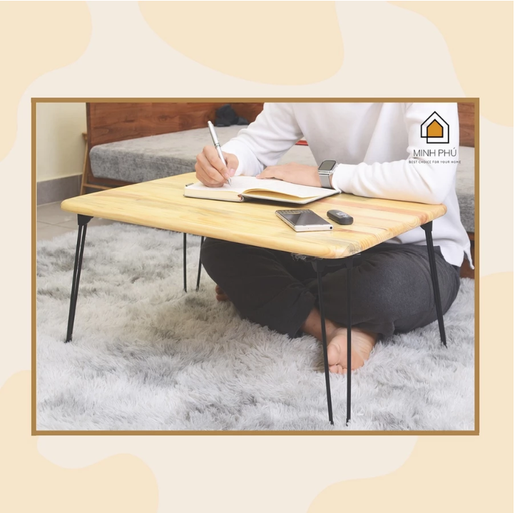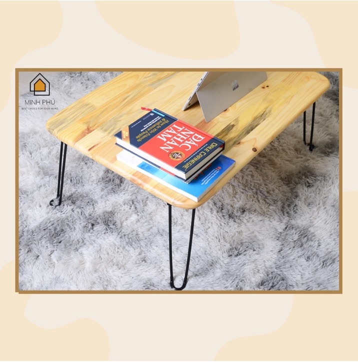 Bàn Gấp Kích Thước 70x50cm CHỊU TẢI 80kg Gỗ Tự Nhiên Chân Sắt Có Đế Cao Su
